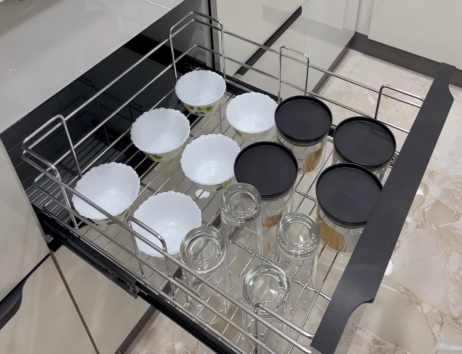 Tajpuria Stainless Steel Plain Basket for Modular Kitchen Trolley/Drawer/Cabinet/Storage Organizer 6 Inches